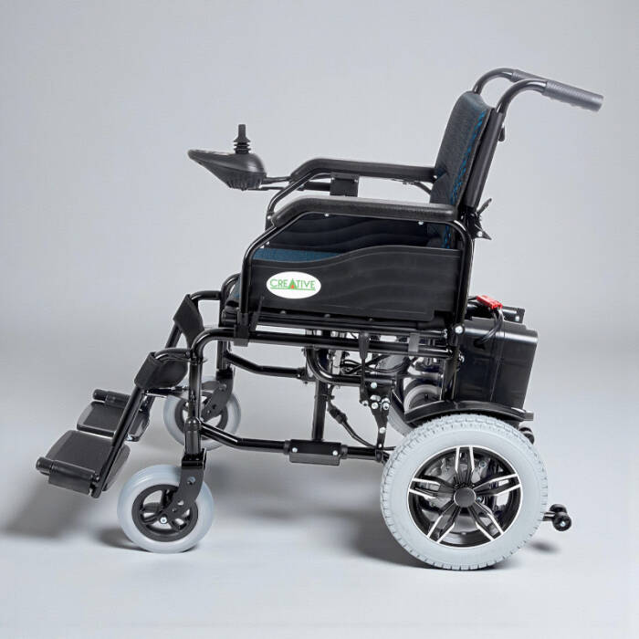 Creative CR-1002 Akülü Tekerlekli Sandalye iç ve dış mekanlarda konforlu ve pratik kullanım deneyimi sunar. Katlanabilir şase ile dilediğiniz her yere götürebileceğiniz bu ürün, kompakt tasarımı ile depolama esnasında fazla yer kaplamaz. Aynı zamanda elektrostatik boya ile tasarlanmış, korozyona dayanıklı güçlü şasesi ile kullanıcılara uzun ömürlü kullanım vaat eder.