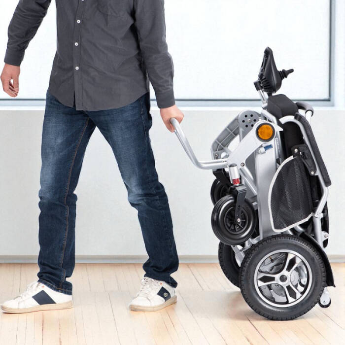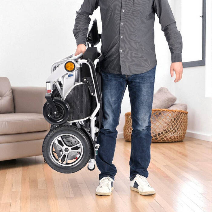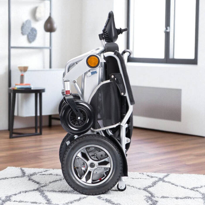 Uzaktan kumanda ile de hareket ettirilen ve güçlü motorlara sahip olan lityum pilli hafif akülü tekerlekli sandalye, 150 kg taşıma kapasitense sahip son derece sağlam ve güçlü yapıdadır. Uçak yolculukları ve araba yolculuklarında katlanabilme özelliği ile sorunsuz taşınmakta, iç ve dış mekânlarda güvenle kullanılmaktadır. 20 km erim mesafesine sahip olup uzun gezintiler için mükemmeldir. Gezmeyi seven, sosyal yaşamın her alanında bulunmak isteyen ve seyahatlerle hayatına renk katan yürüme engelli bireylerin tercihi olan ürünümüz, yüksekliği ve gerginliği ayarlanabilen sırt bölgesi, konforlu oturma minderi, elektromanyetik fren sistemi, uzaktan kumandası, lityum pil sistemi ve katlanabilir gövdesi ile en çok tercih edilen akülü tekerlekli sandalye modelidir.