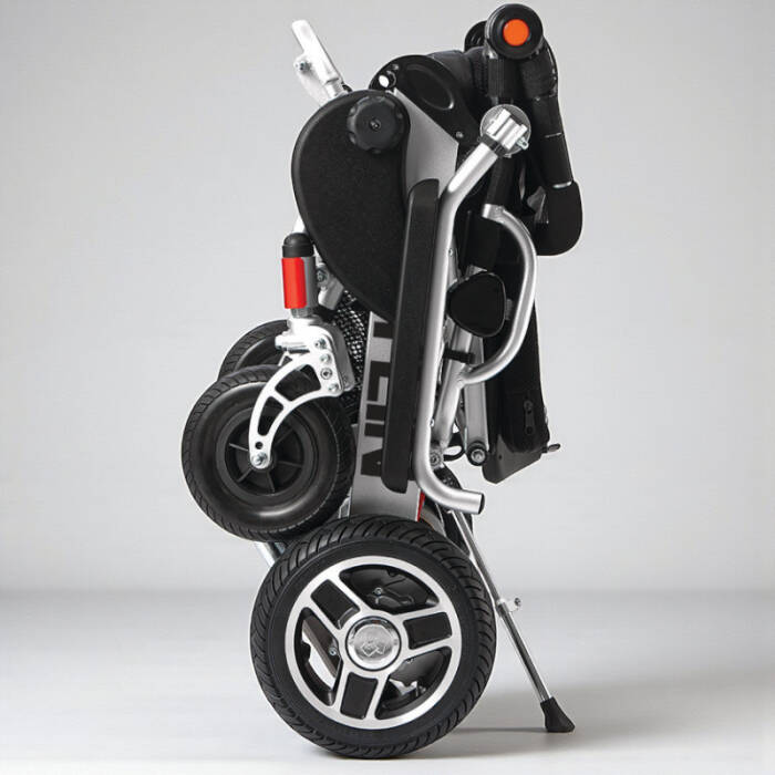 Geri devrilmeyi engelleyen ani-tipper tekerlekler sandalye katlandığında sırt kısmında yer alan refakatçi tutamacı ile ürünün rahat taşınmasını sağlar. Sadece küçük bir bagaj ebatlarına gelen ultra hafif akülü tekerlekli sandalye elektromanyetik fren sistemi, akıllı joystick, transfer kolaylığı, konfor ve güven olarak istenen tüm özelliklere sahiptir.