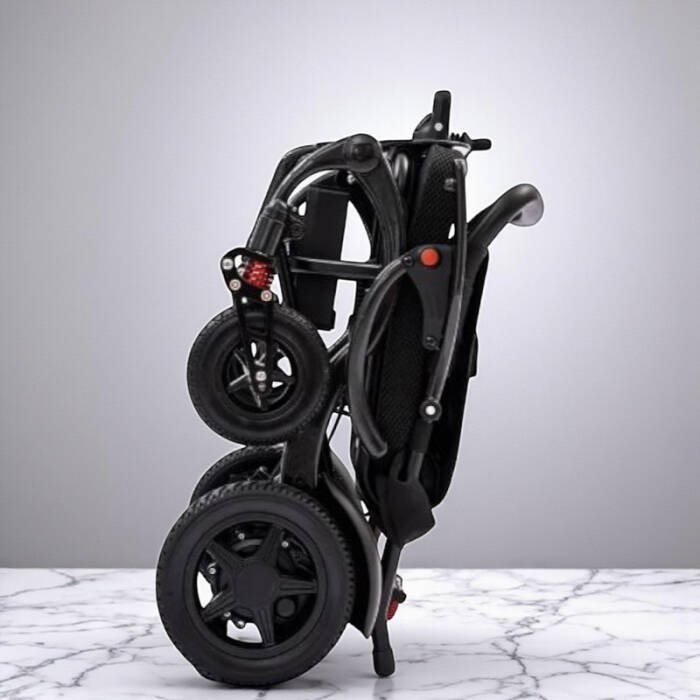 Poylin P214 ergonomik oturma minderi ve sırtlığı, konforlu sürüş deneyimi, farklı sürüş tercihlerine uyum sağlayan ön ve arka tekerlekleri, lityum iyon aküsü, elektrikli parçalar arası izolasyonu ve güvenlik ve devre korumaları ile istenen tüm özelliklere sahip katlanır bir karbon fiber akülü tekerlekli sandalyedir.