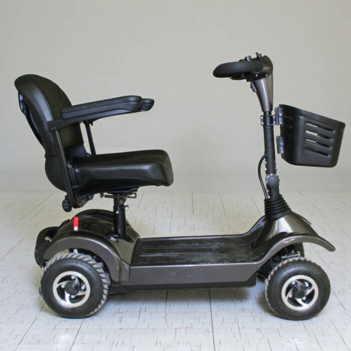 Görünüm olarak standart akülü tekerlekli sandalyelerden farklı olan ürünümüz, 120 kg taşıma kapasitesi, hızı ve güvenli kullanımı ile işlevsel bir engelli aracıdır. Demonte özellikte olan ürünün araç bagajlarında taşınması sorunsuzdur. Havalı ön ve arka tekerlekleri, önde alışveriş sepeti, hareketli kolçakları, konforlu oturma bölgesi ve devrilmeyi önleyen özel süspansiyon sistemi ile sınıfının en kullanışlı ve güvenli engelli aracı olarak popülerdir.