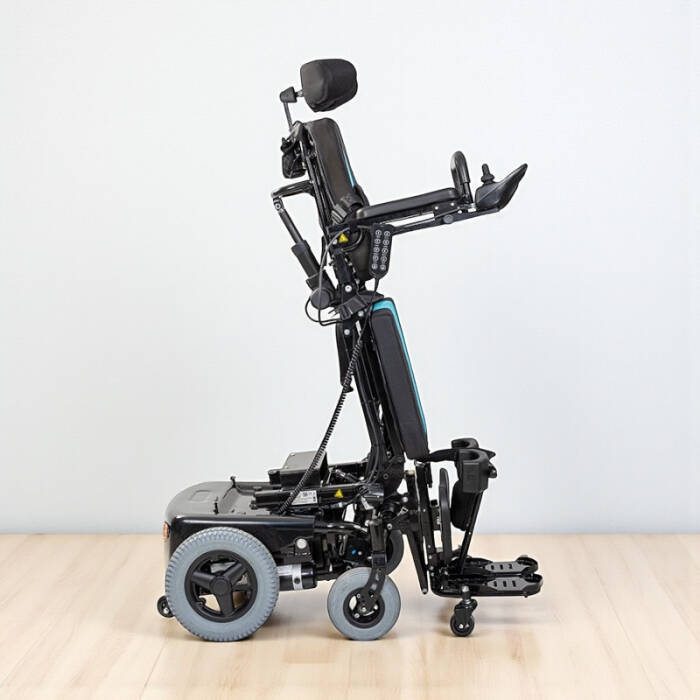 Sırt yatabilen, ayakları yukarı kalkabilen ve kullanıcıyı dik konumlandırabilen ayağa kaldıran akülü tekerlekli sandalye, joystick ile hareket ettirilen son teknoloji medikal bir cihazdır. Hasta, yaşlı ve yürüme engelli bireyler pratik bir şekilde ayağa kalkmakta ve yüksekte olup erişemediği nesnelere kolay bir şekilde erişerek ihtiyacını kimseye ihtiyaç duymadan gidermektedir. Joystick ve uzaktan kumanda ile kullanılan ürünümüz, kademeli olarak kullanıcıyı ayağa kaldıran ve istenen noktada durdurularak sabitlenen sınıfının en kaliteli akülü tekerlekli sandalye modelidir.