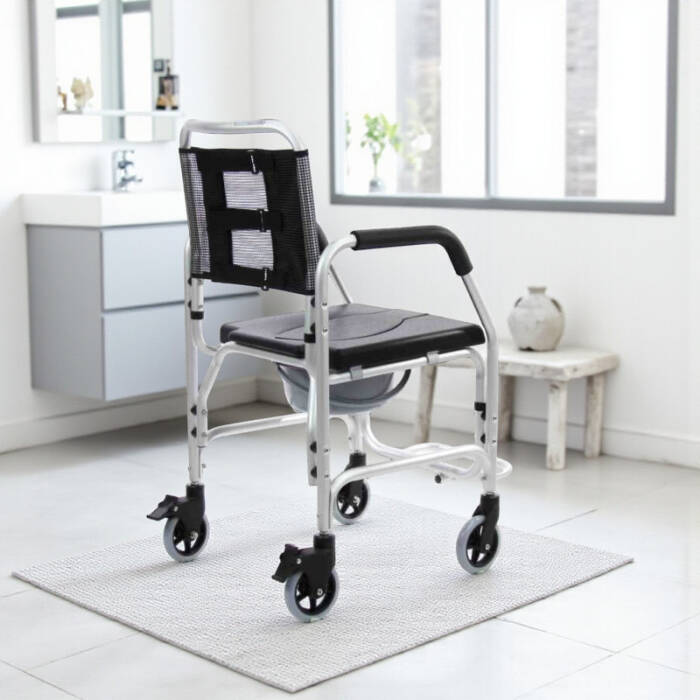 Bu tekerlekli sandalye iç mekanlarda gönül rahatlığı ile kullanılabilir. Yapısı gereği ıslak zeminde kullanıma uygundur. Banyo ve tuvalet gibi alanlarda rahatça kullanılan bu sandalye, alüminyum gövde yapısına sahiptir ve uzun yıllar boyu kullanılsa da paslanma gibi sorunlar ortaya çıkmaz. Mekanik beyaz rengine sahip olan bu ürünün, oturma ve sırt şiltesi siyah renk tonundadır.